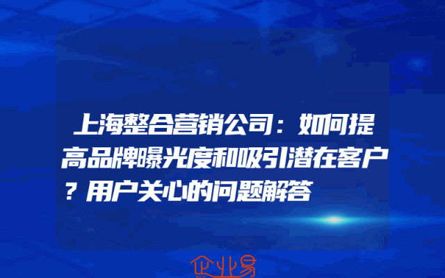- 上海整合营销公司:如何提高品牌曝光度和吸引潜在客户?用户关心的问题解答