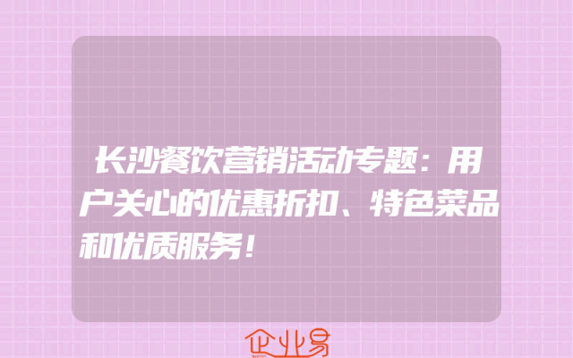 - 长沙餐饮营销活动专题:用户关心的优惠折扣、特色菜品和优质服务!