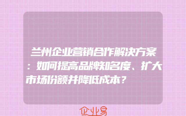 - 兰州企业营销合作解决方案:如何提高品牌知名度、扩大市场份额并降低成本?