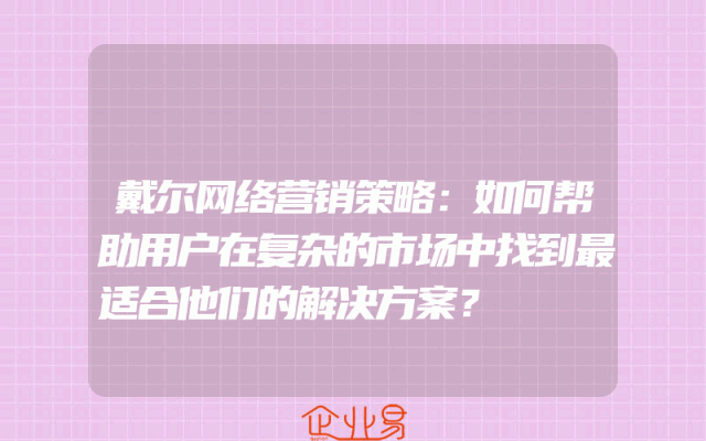 - 戴尔网络营销策略:如何帮助用户在复杂的市场中找到最适合他们的解决方案?