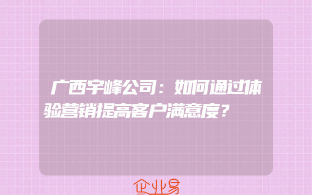 - 广西宇峰公司:如何通过体验营销提高客户满意度?