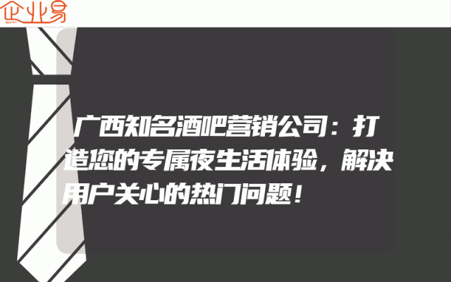 - 广西知名酒吧营销公司:打造您的专属夜生活体验,解决用户关心的热门问题!
