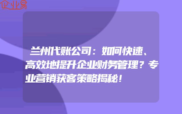 - 兰州代账公司:如何快速、高效地提升企业财务管理?专业营销获客策略揭秘!