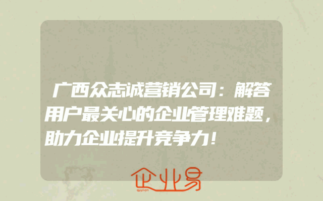- 广西众志诚营销公司:解答用户最关心的企业管理难题,助力企业提升竞争力!