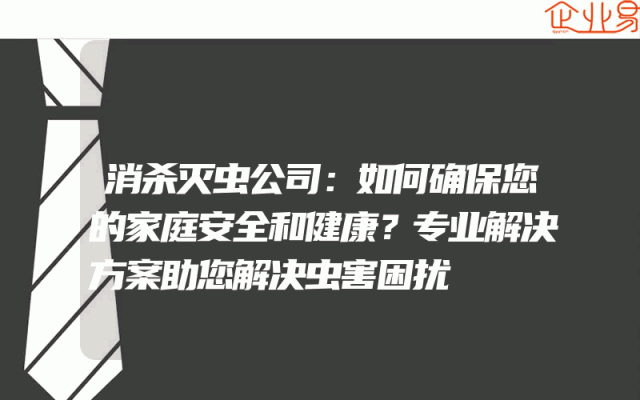 - 消杀灭虫公司:如何确保您的家庭安全和健康?专业解决方案助您解决虫害困扰