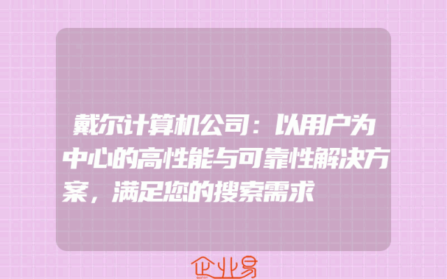 - 戴尔计算机公司:以用户为中心的高性能与可靠性解决方案,满足您的搜索需求