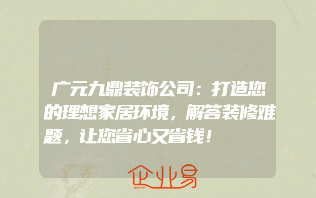 - 广元九鼎装饰公司:打造您的理想家居环境,解答装修难题,让您省心又省钱!