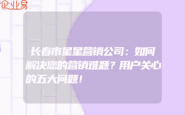 - 长春市星星营销公司:如何解决您的营销难题?用户关心的五大问题!