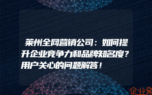 - 莱州全网营销公司:如何提升企业竞争力和品牌知名度?用户关心的问题解答!