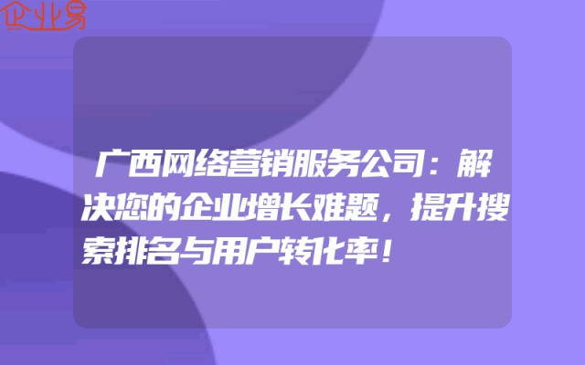 - 广西网络营销服务公司:解决您的企业增长难题,提升搜索排名与用户转化率!