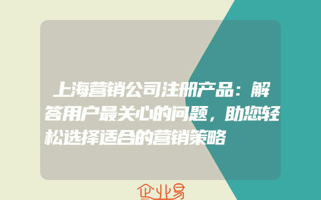 - 上海营销公司注册产品:解答用户最关心的问题,助您轻松选择适合的营销策略