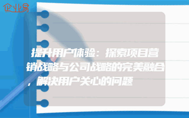 - 提升用户体验:探索项目营销战略与公司战略的完美融合,解决用户关心的问题