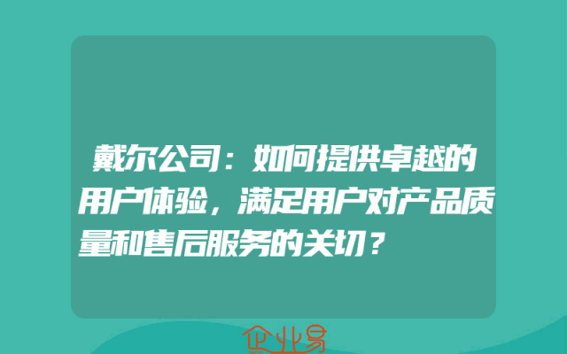 - 戴尔公司:如何提供卓越的用户体验,满足用户对产品质量和售后服务的关切?在当今竞争激烈的市场环境中,企业需要不断提升自身的竞争力,以满足用户对产品质量和售后服务的关切。戴尔公司作为全球领先的IT解决方案提供商,一直致力于为用户提供卓越的用户体