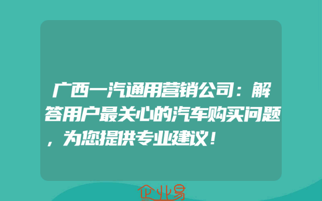 - 广西一汽通用营销公司:解答用户最关心的汽车购买问题,为您提供专业建议!