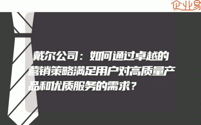 - 戴尔公司:如何通过卓越的营销策略满足用户对高质量产品和优质服务的需求?戴尔公司是一家全球知名的计算机硬件与软件制造商,其产品线包括个人电脑、服务器、存储设备、网络设备等。在竞争激烈的市场环境中,戴尔公司如何通过卓越的营销策略满足用户对高质量
