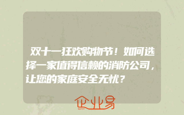 - 双十一狂欢购物节!如何选择一家值得信赖的消防公司,让您的家庭安全无忧?