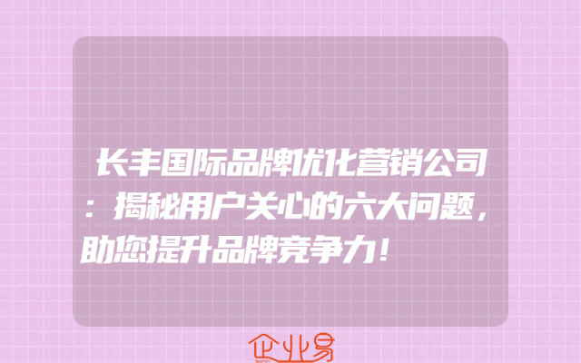 - 长丰国际品牌优化营销公司:揭秘用户关心的六大问题,助您提升品牌竞争力!