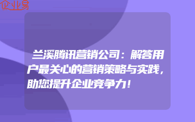 - 兰溪腾讯营销公司:解答用户最关心的营销策略与实践,助您提升企业竞争力!
