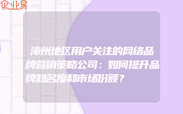 - 漳州地区用户关注的网络品牌营销策略公司:如何提升品牌知名度和市场份额?