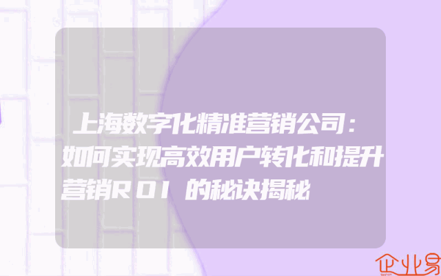 - 上海数字化精准营销公司:如何实现高效用户转化和提升营销ROI的秘诀揭秘