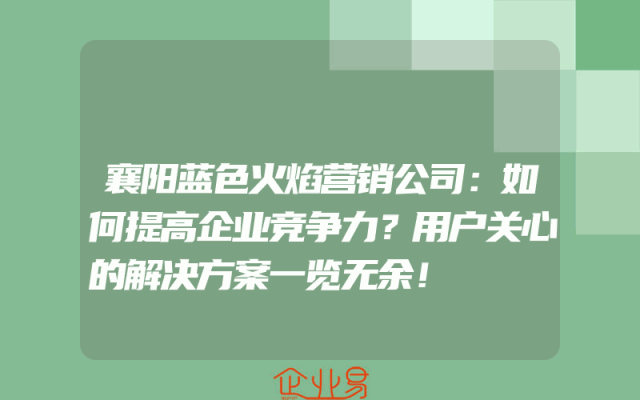 - 襄阳蓝色火焰营销公司:如何提高企业竞争力?用户关心的解决方案一览无余!
