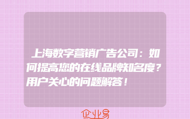 - 上海数字营销广告公司:如何提高您的在线品牌知名度?用户关心的问题解答!