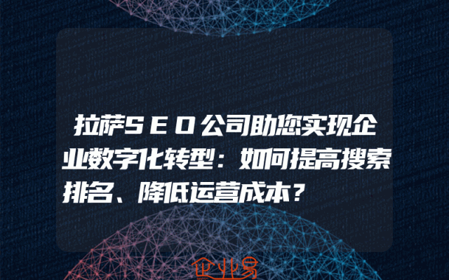 - 拉萨SEO公司助您实现企业数字化转型:如何提高搜索排名、降低运营成本?