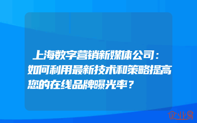 - 上海数字营销新媒体公司:如何利用最新技术和策略提高您的在线品牌曝光率?