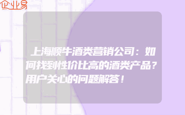 - 上海顺牛酒类营销公司:如何找到性价比高的酒类产品?用户关心的问题解答!