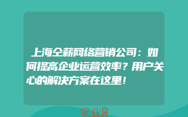 - 上海仝薪网络营销公司:如何提高企业运营效率?用户关心的解决方案在这里!