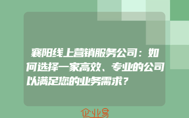 - 襄阳线上营销服务公司:如何选择一家高效、专业的公司以满足您的业务需求?