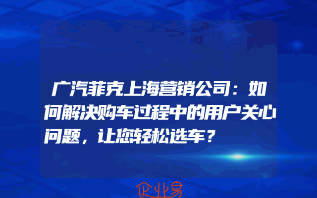 - 广汽菲克上海营销公司:如何解决购车过程中的用户关心问题,让您轻松选车?
