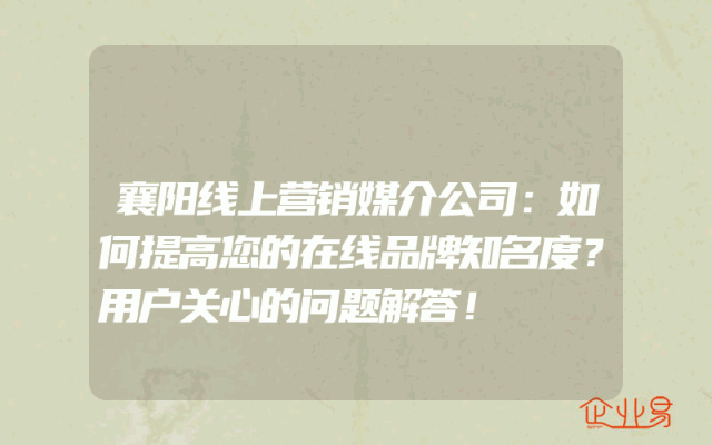 - 襄阳线上营销媒介公司:如何提高您的在线品牌知名度?用户关心的问题解答!