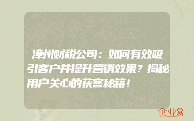 - 漳州财税公司:如何有效吸引客户并提升营销效果?揭秘用户关心的获客秘籍!