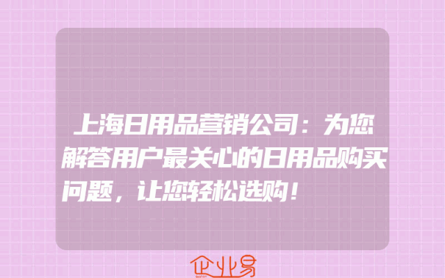 - 上海日用品营销公司:为您解答用户最关心的日用品购买问题,让您轻松选购!