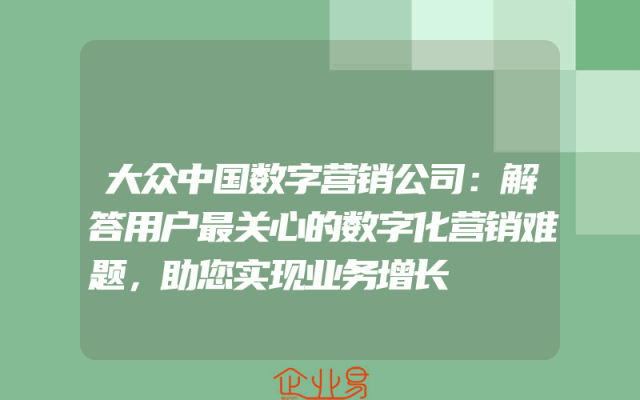 - 大众中国数字营销公司:解答用户最关心的数字化营销难题,助您实现业务增长