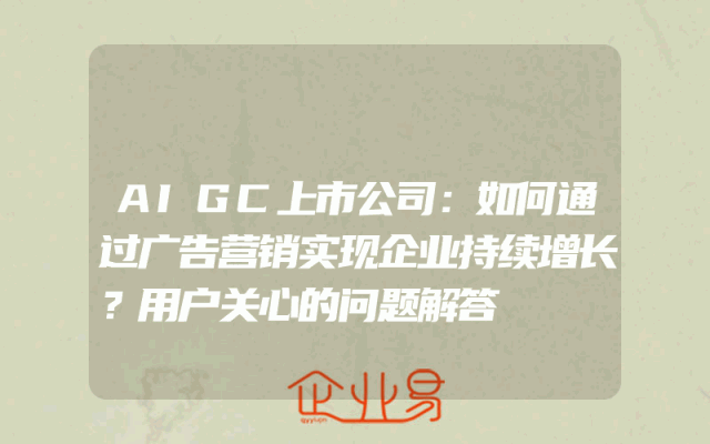 - AIGC上市公司:如何通过广告营销实现企业持续增长?用户关心的问题解答