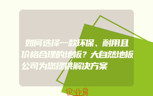 - 如何选择一款环保、耐用且价格合理的地板?大自然地板公司为您提供解决方案
