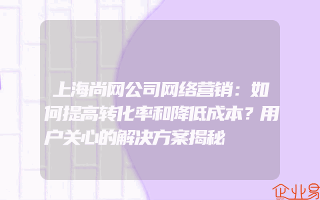 - 上海尚网公司网络营销:如何提高转化率和降低成本?用户关心的解决方案揭秘