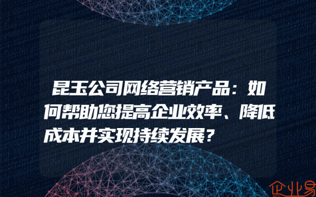 - 昆玉公司网络营销产品:如何帮助您提高企业效率、降低成本并实现持续发展?