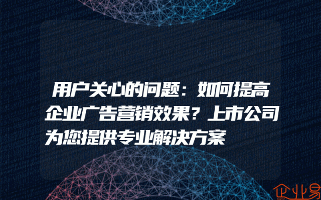 - 用户关心的问题:如何提高企业广告营销效果?上市公司为您提供专业解决方案