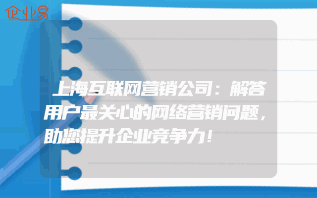 - 上海互联网营销公司:解答用户最关心的网络营销问题,助您提升企业竞争力!