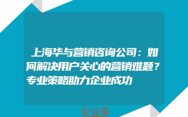 - 上海华与营销咨询公司:如何解决用户关心的营销难题?专业策略助力企业成功