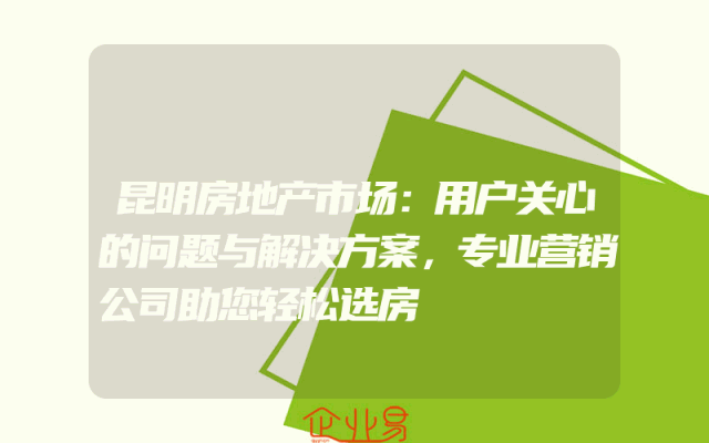 - 昆明房地产市场:用户关心的问题与解决方案,专业营销公司助您轻松选房