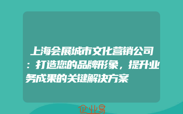 - 上海会展城市文化营销公司:打造您的品牌形象,提升业务成果的关键解决方案