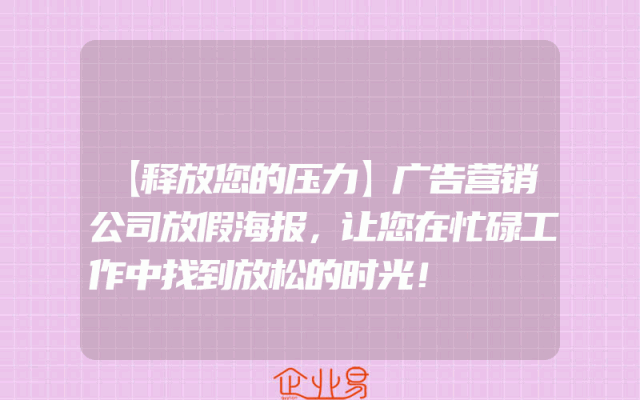 - 【释放您的压力】广告营销公司放假海报,让您在忙碌工作中找到放松的时光!