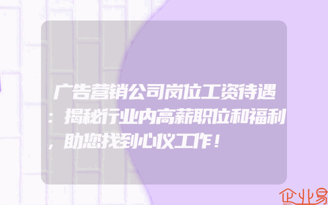 - 广告营销公司岗位工资待遇:揭秘行业内高薪职位和福利,助您找到心仪工作!