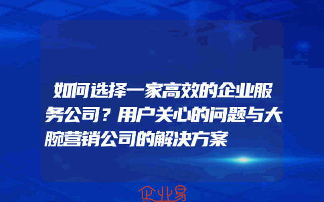 - 如何选择一家高效的企业服务公司?用户关心的问题与大腕营销公司的解决方案