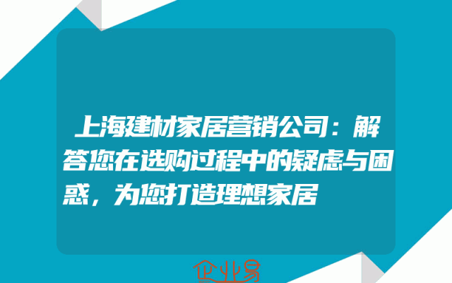 - 上海建材家居营销公司:解答您在选购过程中的疑虑与困惑,为您打造理想家居