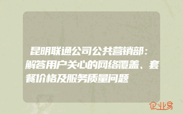 - 昆明联通公司公共营销部:解答用户关心的网络覆盖、套餐价格及服务质量问题